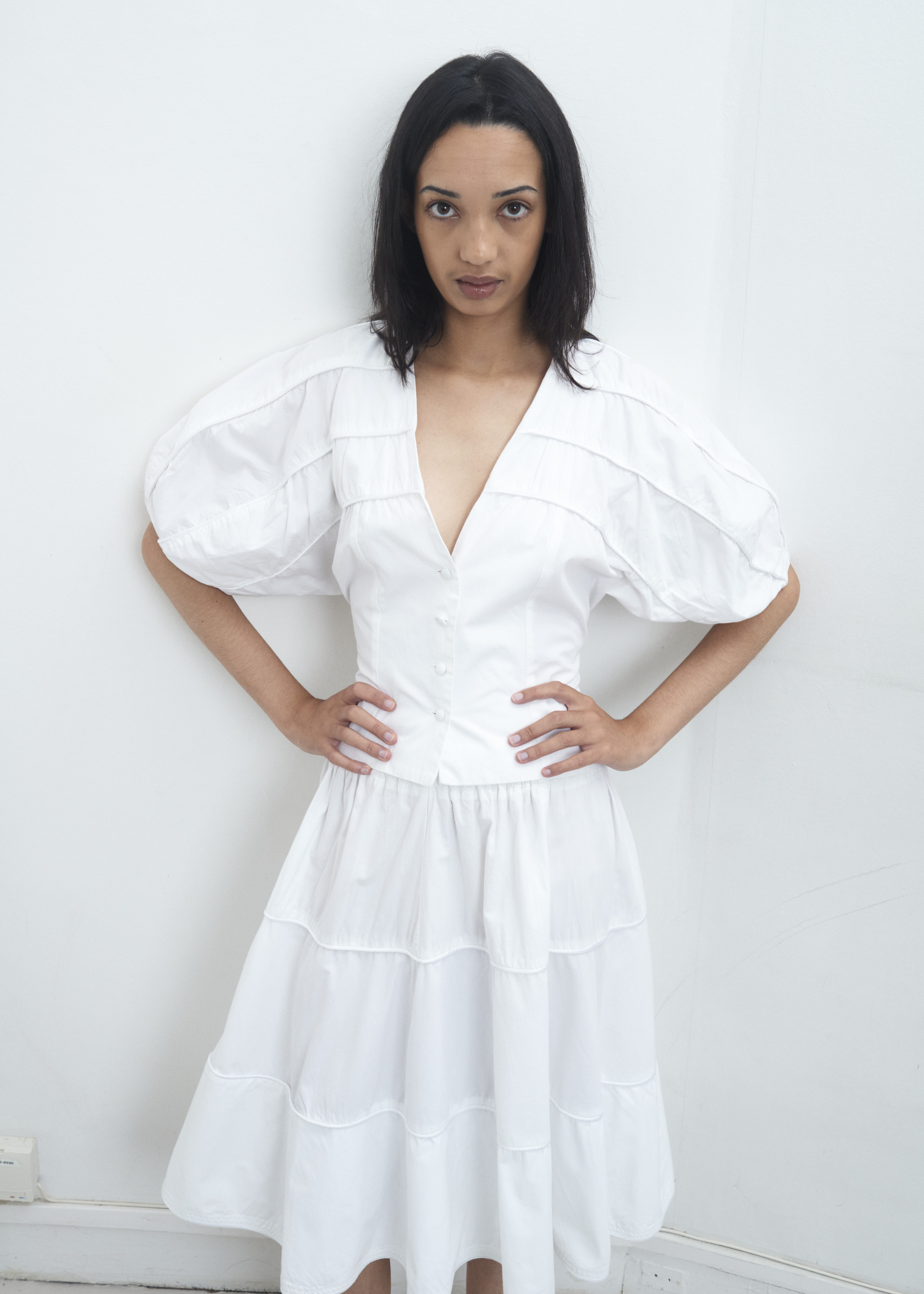 For the skirt Length : 63 cm Waist width : 33 cm (Elastic waist) Model is 175 cm / 36 FR