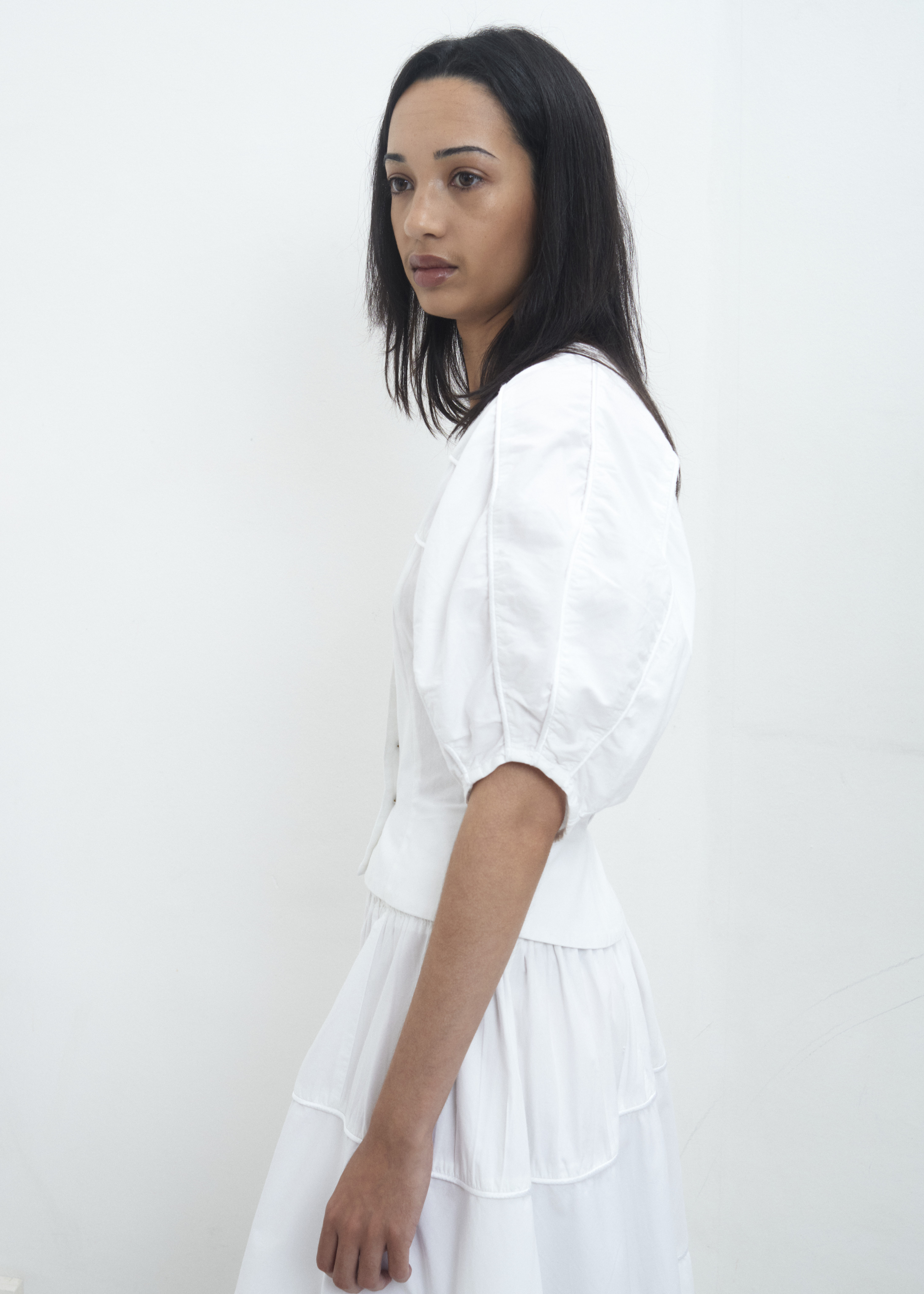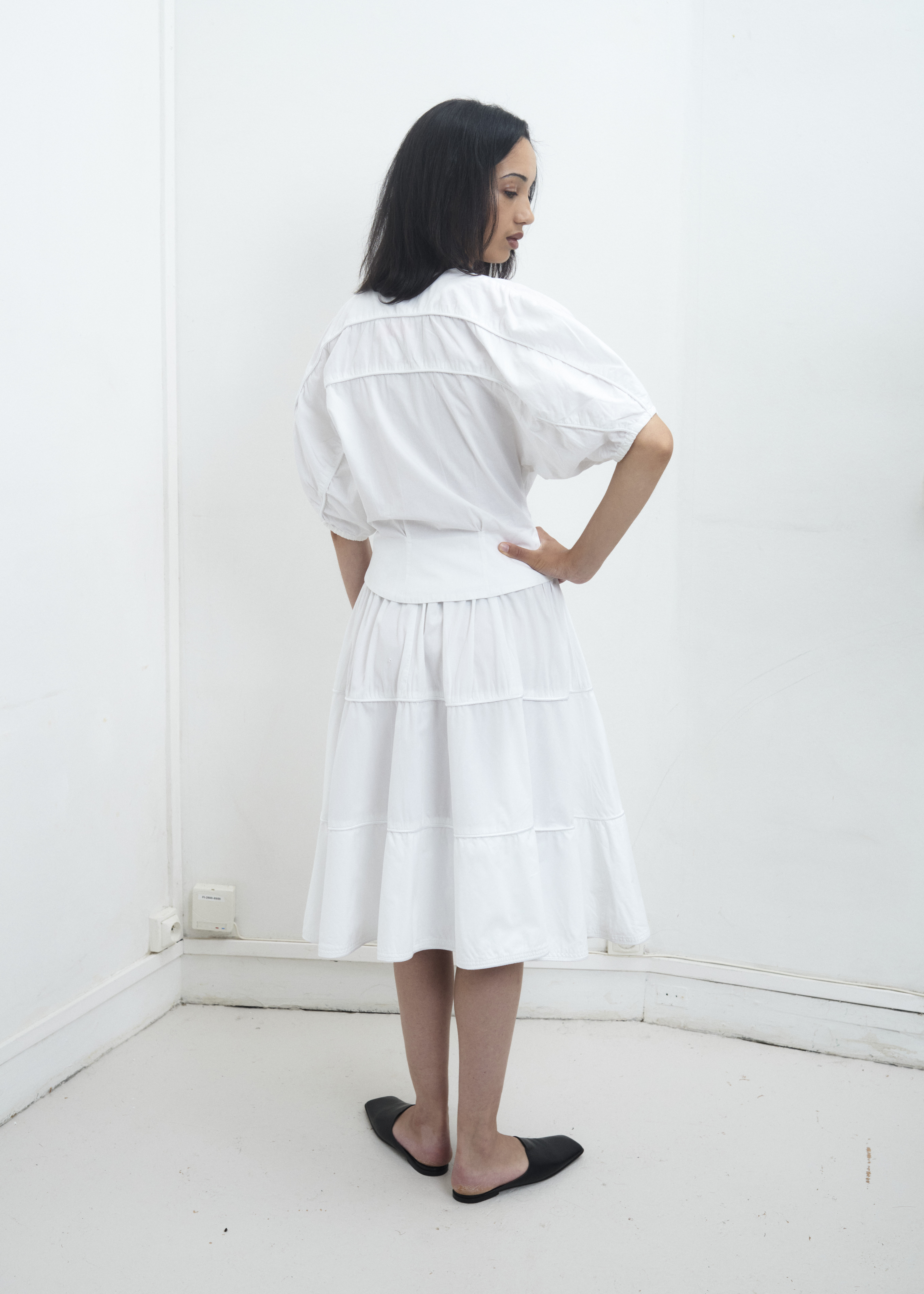 For the skirt Length : 63 cm Waist width : 33 cm (Elastic waist) Model is 175 cm / 36 FR